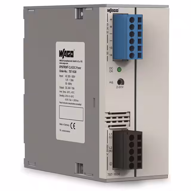 787-1638AC/DC DIN RAIL SUPPLY 24V 240W WAGO Corporation |
